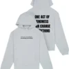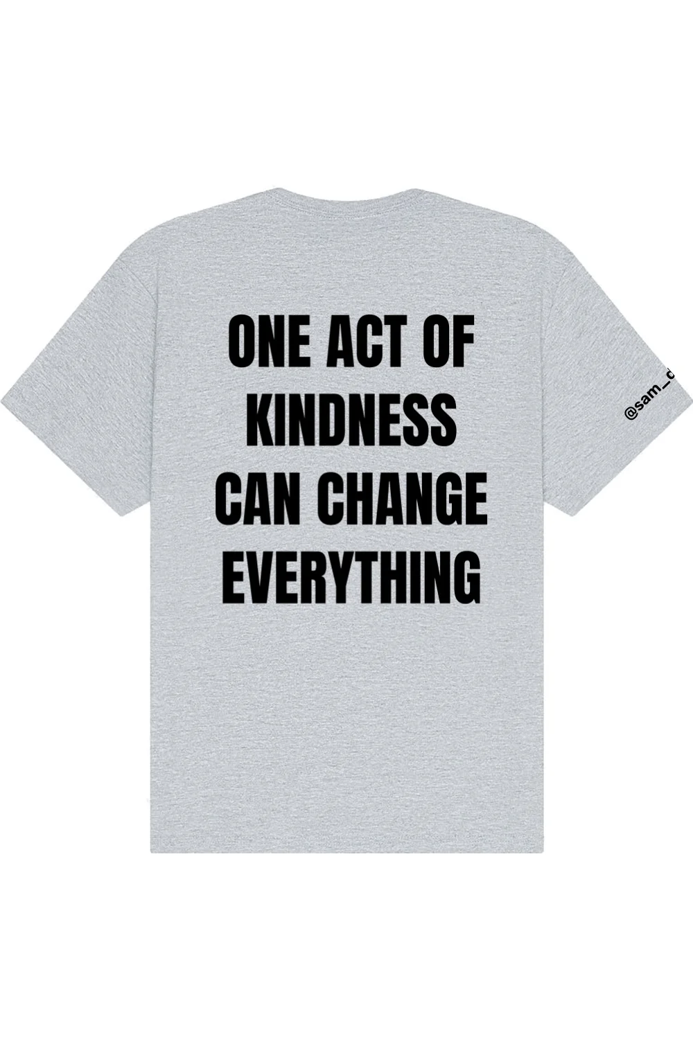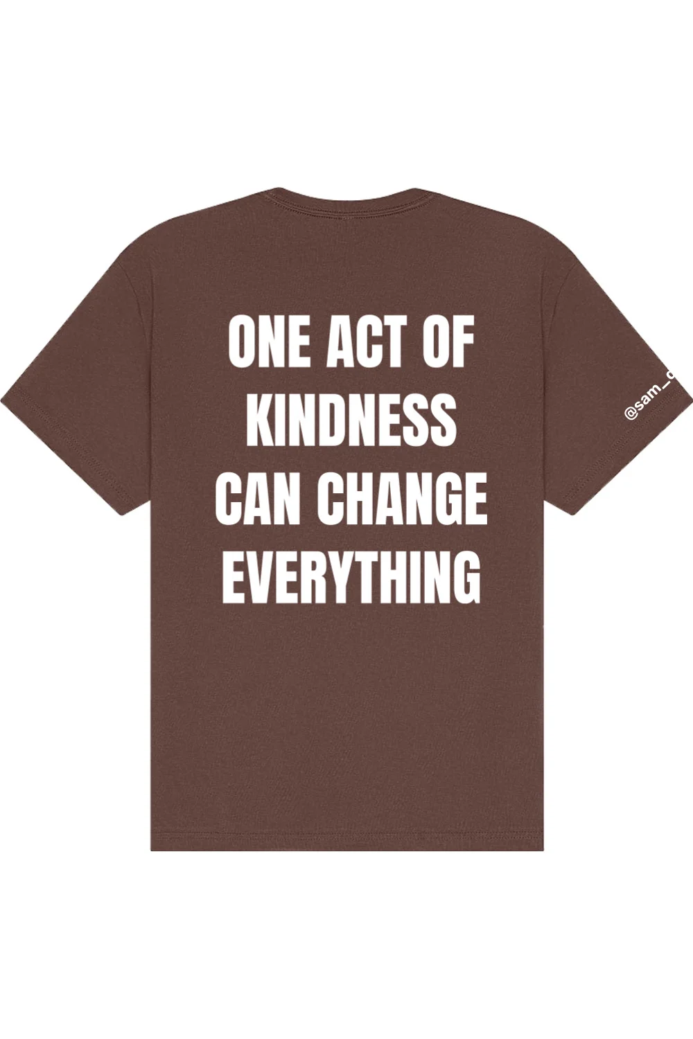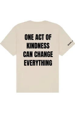 The ONE ACT OF KINDNESS T-SHIRT delivers premium comfort with a modern, relaxed edge. Crafted from 7.5 ounce 100 percent Airlume combed and ring spun cotton, it offers a substantial yet soft feel with elevated quality. Designed with a boxy relaxed fit, drop shoulders, side seams, and a double stitched 7 8 neck, it blends structure with effortless style. Finished with DTF logos on the front, back, and left sleeve, this statement piece pairs impactful design with standout presence.